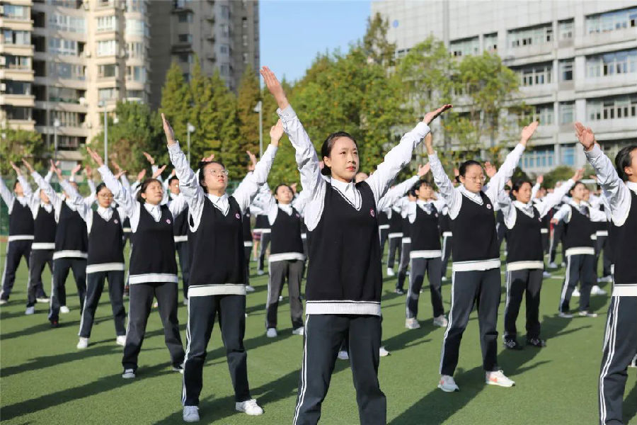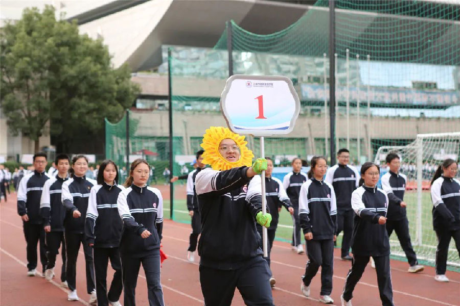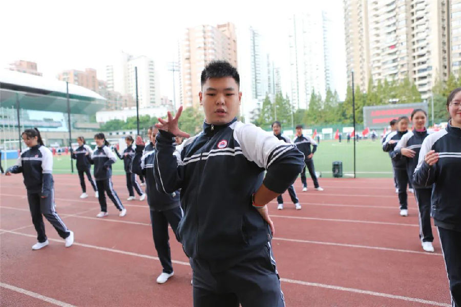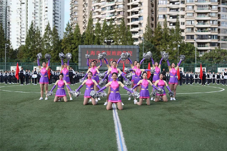 热身表演开始。由顾月仙老师带领的Top Girls社团为大家带来了精彩的啦啦操舞蹈,这个社团每年都会参加各级各类比赛,可谓战果累累;空手道表演也是每年运动会上的保留节目,该社团在居剑锋老师的带领下一直人丁兴旺,参加比赛更是战果辉煌;“和乐”是商贸旅游学校的校训,为此,王建国、戴杰老师编排了校园律动操《你笑起来真好看》,来自浦东校区20级的60位同学个个笑容洋溢,激情四射,同学们真挚友好灿烂的微笑是学校的一张靓丽名片。