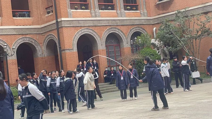 比赛过程中,有的队伍配合默契,动作行云流水,引得围观同学阵阵欢呼。而有的队伍则稍显慌乱,出现了几次失误,但队员们没有气馁,迅速调整状态,继续投入战斗。大家都拼尽全力,汗水浸湿了衣衫,却依旧目光坚定。赛场上,团队的凝聚力展现得淋漓尽致,每一次跳跃都饱含着对胜利的渴望。在热烈的氛围中,这场长绳比赛不仅赛出了水平,更赛出了团结一心的精神风貌,成为校园里一道亮丽的风景线。