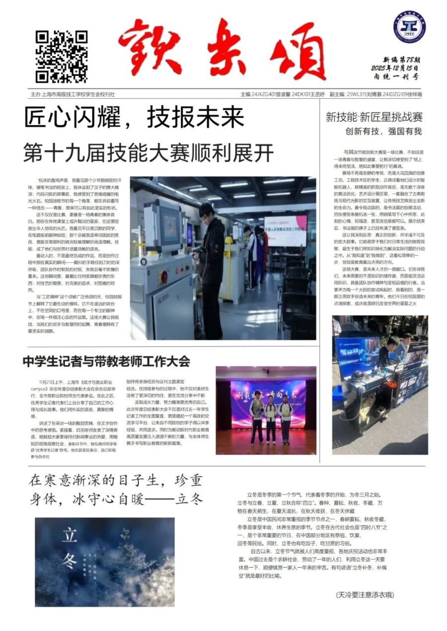 十二月,是科技逐梦的征程,是青春绽放的舞台,是传统传承的纽带。它以奋斗为笔,饱蘸热忱;以传统为墨,沉淀厚重,在时光的长卷上写下一段段值得铭记的篇章。每一缕风、每一个瞬间,都在诉说着属于这个季节的独特美好,也镌刻着我们共同的成长与热爱。