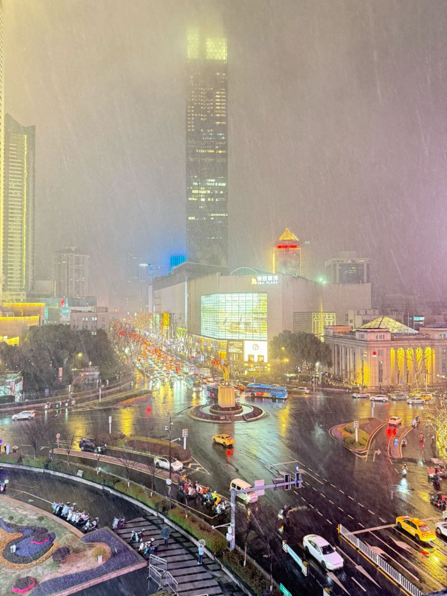 第一次在这样的雪夜,站在新街口的路口,看雪花亲吻玻璃幕墙,看行人裹紧大衣匆匆走过。原来繁华也可以如此柔软,原来冬天的浪漫,就藏在这一场不期而遇的大雪里。