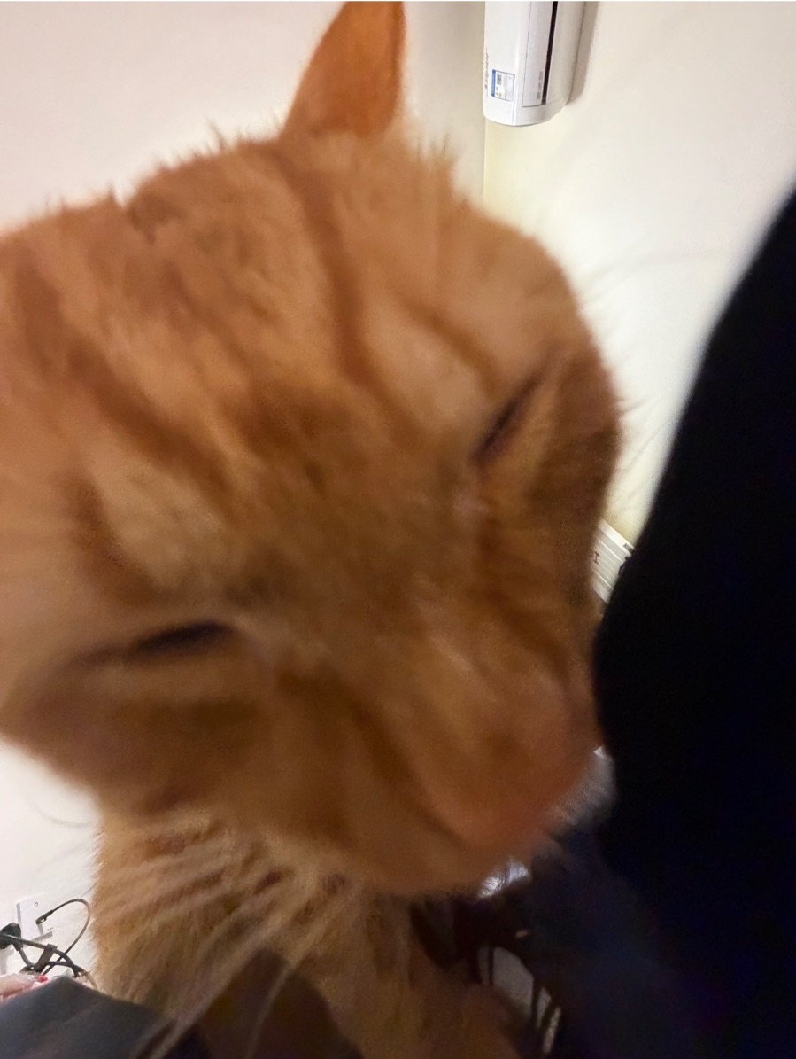 本来在写作业写得昏脑涨,这只软乎乎的小家伙直接凑到我身边,把圆滚滚的脑袋往我胳膊上蹭,毛茸茸的触感瞬间治愈了所有疲惫。它眯着眼睛,半睁半闭的样子像在撒娇,小鼻子一抽一抽地闻我,尾巴轻轻扫着我的腿,摆明了就是要贴贴求摸。伸手摸它的大脸时,它舒服得直接把眼睛闭成两条缝,暖乎乎的小身子靠着我,连呼吸都变得轻轻的。在忙碌的校园生活里,有这样一只小猫咪的陪伴,真的太幸福啦!