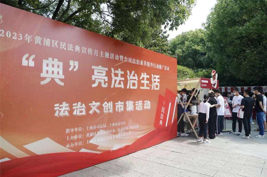 活动当天骄阳似火,点燃了参与法治宣传活动的市民们的热情,也让在黄浦公园广场上的咖啡屋一下子“人气”和“热气”爆棚。5月29日下午,2023年黄浦区民法典宣传月主题活动——“典”亮法治生活在黄浦江畔的外滩党群服务中心举行。