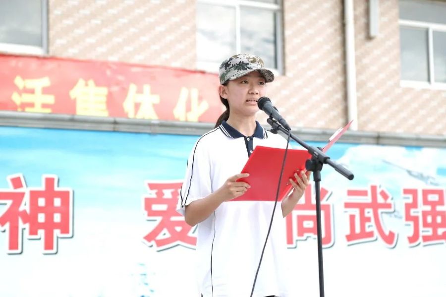 23文物班周思清同学作为学生代表发表军训感言。她回顾了五天生活的点滴,同学们提高身体素质的同时,对自身和家国都有了全新的认知:刚强的意志,礼仪的美德、团结的力量、坚持到底和永不言败的精神。最后,她真诚地感谢了教官们与老师们的辛勤付出与悉心陪伴,坚信在新的起跑线上全体同学必将迈着整齐的步伐,在成长的路上一同前进!