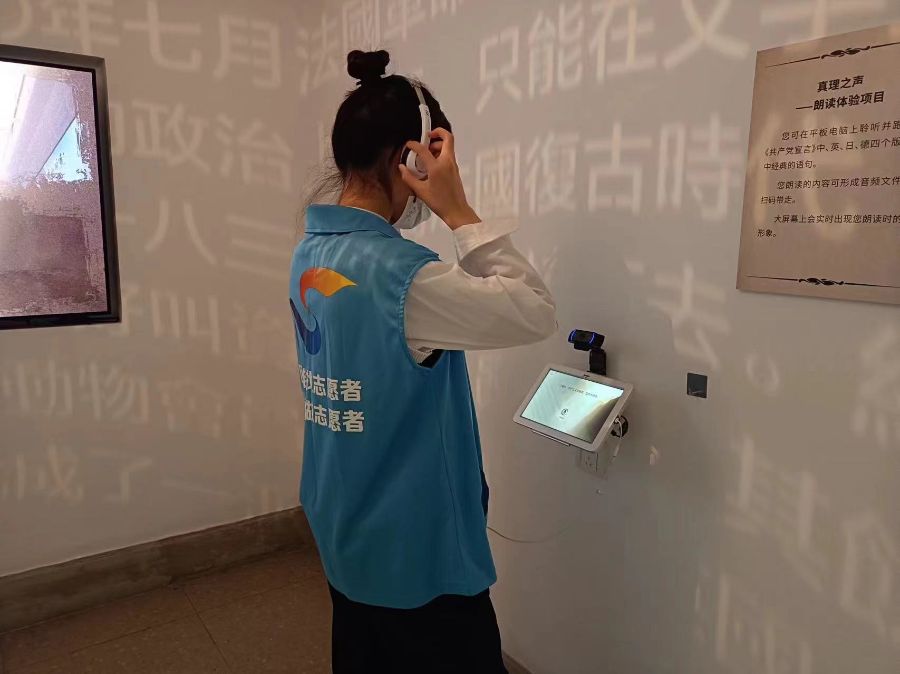 又新印刷所是印刷《共产党宣言》首个中文全译本的旧址,现位于黄浦区复兴中路221弄12号,展出了100本不同语种不同年代版本的《共产党宣言》真品。22文物1班志愿者团队总共有30人,同学们从接待、背词到现在的讲解,通过志愿服务,他们也可以提高自己的能力和素质。