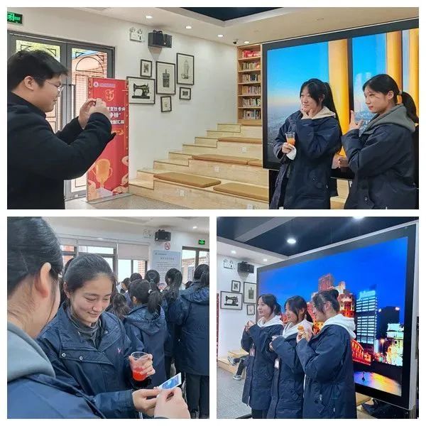 根据得分情况赢得下个环节体验饮品的机会,由该班调酒社的社员们为大家带来了一场视觉与味觉的双重盛宴。他们运用娴熟的调酒技巧,用不同颜色的饮料调制饮品。因未成年人不能饮酒,23酒店班的同学们用葡萄汁、果汁等饮料模拟出酒的色泽和质感,让参与的同学们在欣赏美妙表演的同时,也能感受到调酒的独特魅力。