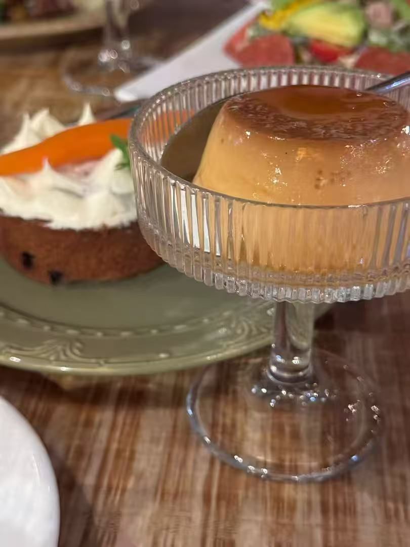 在这家餐厅的最后,我们决定尝试他们的甜品。我选择了一款焦糖布丁,它被盛放在一个精致的玻璃杯中,表面覆盖着一层光滑的焦糖。用勺子轻轻敲破焦糖层,下面的布丁柔软细腻,入口即化,焦糖的甜香与布丁的奶香完美融合,让人忍不住一口接一口。朋友们则选择了一款装饰着奶油和水果的蛋糕,色彩鲜艳,看起来非常诱人。我们一边品尝着甜品,一边分享着彼此的趣事,这样的时光总是让人感到快乐和满足。甜品总是有这样的魔力,能够瞬间提升人的心情,让人忘记烦恼,只专注于眼前的甜蜜。